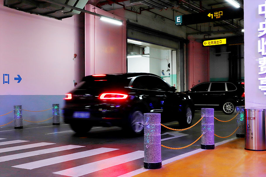 新型路障石材具有擋車(chē)功能,提升場(chǎng)所的形象和安全性,夜晚展現(xiàn)出特別絢麗的效果